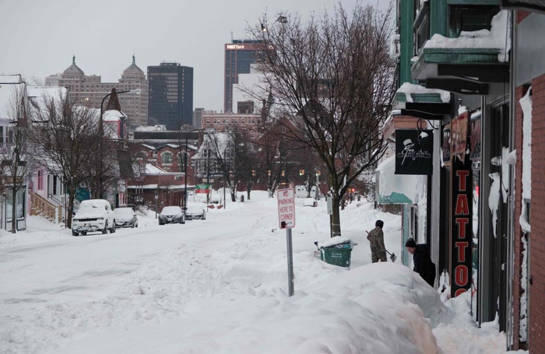 وظل الطقس العاصف مخيما على مقاطعة إري في غرب نيويورك حيث تقع بافالو والتي صارت تمثل بؤرة أزمة الطقس.