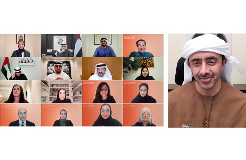 ترأس سمو الشيخ عبدالله بن زايد آل نهيان وزير الخارجية والتعاون الدولي اجتماع لجنة الاحتفال باليوبيل الذهبي لدولة الإمارات - عبر تقنية الاتصال المرئي - بحضور سمو الشيخة مريم بنت محمد بن زايد آل نهيان نائب رئيس اللجنة.