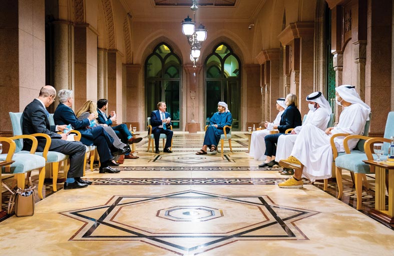 وقد التقى سموه في قصر الإمارات بأبوظبي ليام فوكس وزير الدفاع والتجارة السابق في بريطانيا رئيس مجموعة الاتفاقيات الإبراهيمية وأعضاء البرلمان البريطاني ووفد المجموعة، مارك غارنييه نائب رئيس لجنة اختيار التجارة الدولية وستيفن كراب النائب والرئيس البرلماني لأصدقاء إسرائيل المحافظين والدكتورة ليزا كاميرون نائب في البرلمان ورئيس APPG للشؤون الخارجية.