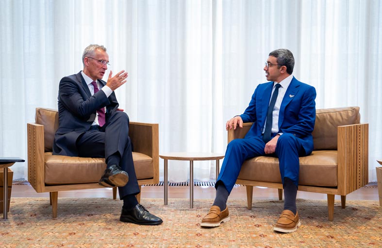 التقى سمو الشيخ عبدالله بن زايد آل نهيان وزير الخارجية والتعاون الدولي معالي ينس ستولتنبرغ الأمين العام لحلف شمال الأطلسي " الناتو".