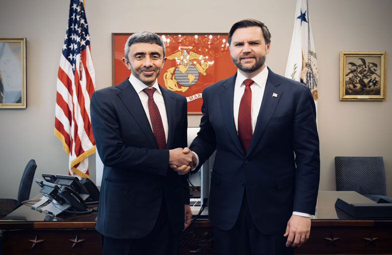التقى سمو الشيخ عبدالله بن زايد آل نهيان، نائب رئيس مجلس الوزراء وزير الخارجية، معالي جي دي فانس، نائب رئيس الولايات المتحدة الأمريكية، وذلك خلال زيارة عمل يقوم بها سموه إلى واشنطن. جرى خلال اللقاء بحث العلاقات الاستراتيجية والتاريخية التي تجمع دولة الإمارات والولايات المتحدة الأمريكية، وسبل تعزيزها وتطويرها في مختلف المجالات، ومنها الاقتصادية والاستثمارية والتجارية، والتكنولوجيا المتقدمة، والطاقة، والذكاء الاصطناعي.