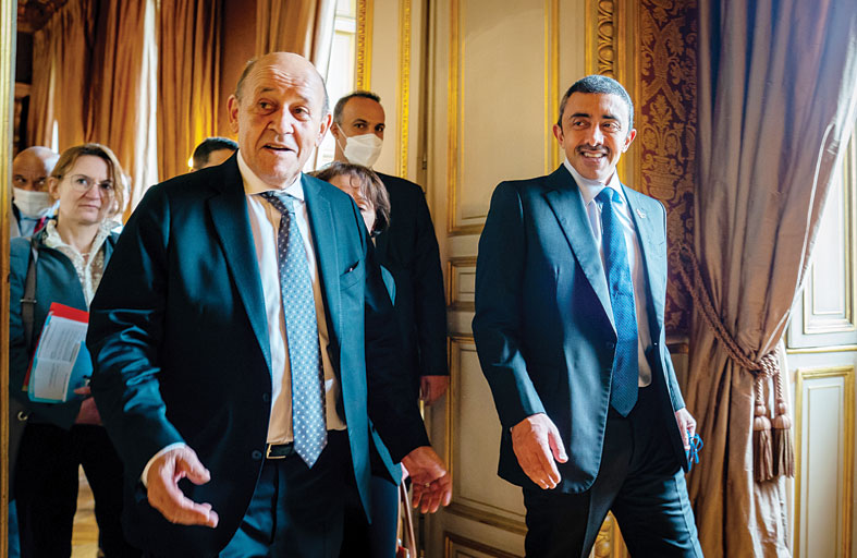 وأكد سمو الشيخ عبدالله بن زايد آل نهيان على النمو المستمر بمستويات التعاون المشترك في ظل الشراكة الاستراتيجية الإماراتية الفرنسية المتميزة والمتطورة مشيرا إلى أن الشراكة بين البلدين الصديقين أثمرت العديد من الإنجازات النوعية في مختلف القطاعات، كما تعمل دولة الإمارات وفرنسا معا من أجل تعزيز السلام والاستقرار على الصعيدين الإقليمي والعالمي ونشر قيم الاعتدال والتسامح والتعايش بين الشعوب.