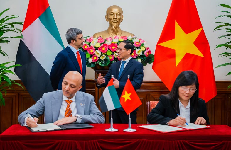 وعقب اللقاء شهد سمو الشيخ عبدالله بن زايد آل نهيان وزير الخارجية ومعالي بوي ثان سون وزير خارجية جمهورية فيتنام الاشتراكية التوقيع على مذكرة تفاهم بين أكاديمية أنور قرقاش الدبلوماسية والأكاديمية الدبلوماسية في فيتنام. وقع مذكرة التفاهم سعادة الدكتور بدر المطروشي سفير الدولة لدى جمهورية فيتنام الاشتراكية وسعادة الدكتورة فام لان زونغ رئيسة الاكاديمية الدبلوماسية الفيتنامية بالوكالة.حضر اللقاء سعادة سعيد الهاجري مساعد وزير الخارجية للشؤون الاقتصادية والتجارية، وسعادة عمران شرف مساعد وزير الخارجية لشؤون العلوم والتكنولوجيا المتقدمة، وسعادة الدكتورة مها بركات مساعدة وزير الخارجية لشؤون الصحة، وسعادة بدر عبدالله المطروشي سفير الدولة لدى جمهورية فيتنام الاشتراكية.