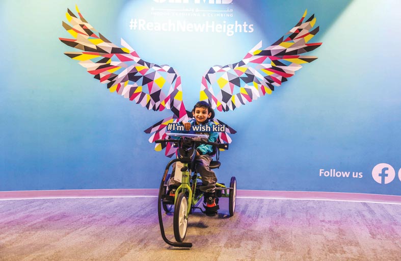 بمناسبة الاحتفالات الدولية في يوم الأمنية العالمي حرصت مؤسسة تحقيق أمنية على تعزيز مشاعر الفرح والبهجة في قلوب الأطفال المرضى من خلال تحقيق أمنياتهم، ودعمهم بالمزيد من القوّة والسعادة. وكانت أمنية الطفل عبد الرحمن 8 سنوات الوحيدة أن يتمكن من المشي كغيره من الأطفال، ولكن لاستحالة هذا الأمر مع مرضه، فاجأته المؤسسة بتجربة طيران داخلي مميزة في كلايم أبوظبي، مع تقديم دراجة مُخصّصة لذوي الهمم تمنحه الشعور بالمزيد من الحرية في الحركة. وقام فريق عمل المؤسسة بالتحضير لتحقيق الأمنية بمفاجآت سارّة، حيث تمّ التنسيق مع كلايم أبوظبي، المرفق الترفيهي والرياضي الداخلي الأبرز في دولة الإمارات، لمنح عبد الرحمن يوماً رائعاً حافلاً بالحماس.