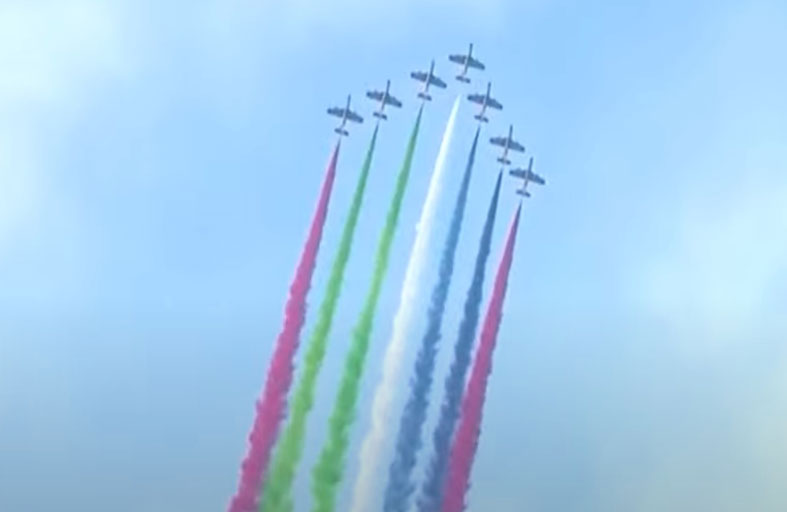 نظمت دائرة الطيران المدني بالفجيرة، ولجنة تنظيم احتفالات عيد الاتحاد الـ 51 بالإمارة، استعراضًا جويًا لطائرات اف16 وميراج 2000، قدمه فريق فرسان الإمارات للاستعراضات الجوية، وذلك على شاطئ دبا الفجيرة بمنطقة الفقيت، ضمن احتفالات الإمارة بعيد الاتحاد الـ 51 للدولة. وحظي العرض الجوي بحضور جماهيري غفير من مختلف الجنسيات والأعمار الذين توافدوا للاستمتاع بمشاهدة العرض المميز، حيث حلقت الطائرات الاستعراضية في سماء دبا الفجيرة متوشحة بألوان علم دولة الإمارات خلال العرض الاحترافي المبهر، في أجواء وطنية سادتها مشاعر الفخر والبهجة في هذه المناسبة الغالية.