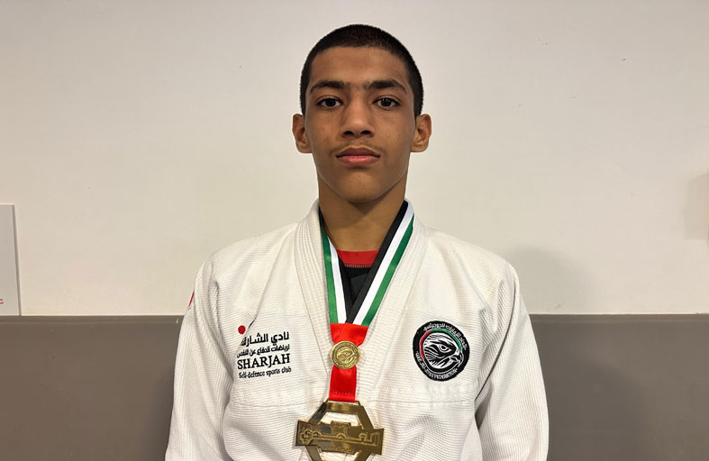 على الرغم من قصر مدة مشاركته في منافسات رياضة الجو جيتسو، والتي لم تتجاوز 8 أشهر، إلا أن عمر يونس لاعب نادي الشارقة لرياضات الدفاع عن النفس استطاع أن يتوج بـ5 ميداليات ذهبية، كان آخرها ذهبية “بطولة التحدي” التي أقيمت في صالة مبادلة آرينا بمدينة زايد الرياضية بأبوظبي، وشهدت مشاركة أكثر من 3 آلاف لاعب ولاعبة من مختلف الأعمار، حيث شارك في وزن 55 كجم. وقال عمر يونس إن شغفه برياضة الجو جيتسو جاء عن طريق شقيقه لاعب جو جيتسو سابق، الذي شجعه كثيرا في بداية مشواره، وساعده في اكتساب الخبرة اللازمة واختصار الزمن، فضلا عن دور نادي الشارقة لرياضات الدفاع عن النفس، الذي وفر له جميع الإمكانيات للتدريب بشكل يومي لأكثر من 6 ساعات، والمشاركة في مختلف البطولات ” . وأضاف يونس ابن الـ 15 عاما : “الجو جيتسو بالنسبة لي أسلوب حياة، أفادني كثيرا في دراستي وأعطاني الدافع للتفوق فيها، كما ساهم في تطوير أسلوبي في التعامل مع الآخرين، وجعلني أفكر خارج الصندوق، وبالتالي زاد شغفي بهذه الرياضة، في وقت قصير ” . وأشار إلى أن هدفه القادم هو المشاركة في مختلف بطولات رابطة أبوظبي لمحترفي الجوجيتسو، من أجل اكتساب المزيد من الخبرات، والحصول على الميداليات الذهبية، والتأهل لخوض منافسات الفنون القتالية المختلطة التي تتطلب جهدا كبيرا كونها تحتاج إلى تدريبات مكثفة. واختتم عمر يونس بالقول “ لاعب الجو جيتسو لا بد أن يكون مختلفا عن الآخرين، سواء من ناحية اللياقة الدنية أو أسلوبه الدقيق في التغذية، ونمط الحياة بشكل كامل، حتى يظل في الجاهزية الكاملة من أجل المشاركة والتتويج بالألقاب، وهو ما أعمل عليه دائما».