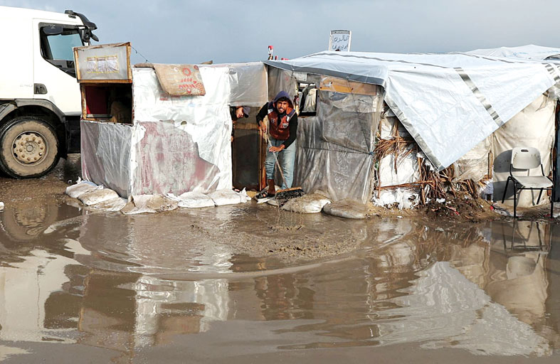 غرقت آلاف الخيام، الليلة قبل الماضية وفجر أمس الاثنين، في مخيمات النزوح في مناطق متفرقة من دير البلح ومواصي خانيونس جنوب قطاع غزة، جراء الأمطار الغزيرة التي هطلت على القطاع.