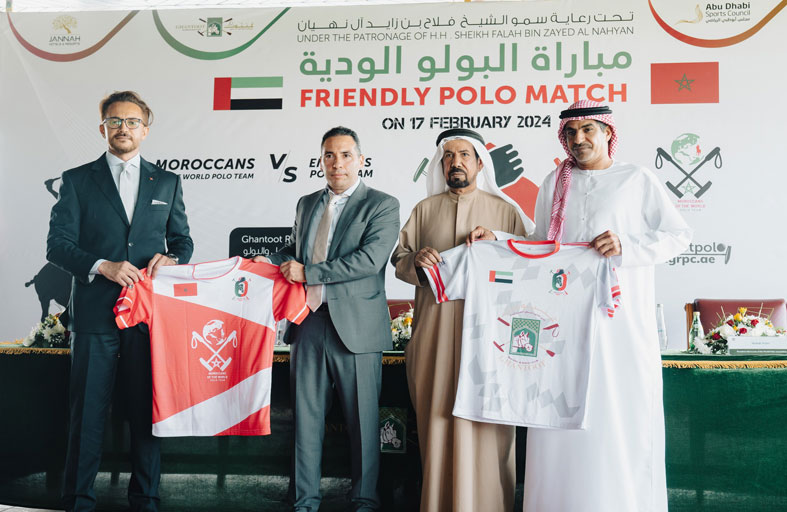 برعاية سمو الشيخ فلاح بن زايد آل نهيان رئيس نادي غنتوت لسباق الخيل والبولو وبدعم من مجلس أبوظبي الرياضي يشهد ملعب سلطان بن زايد للبولو بنادي غنتوت الساعة الثانية من عصر اليوم السبت 17 فبراير الحالي اللقاء الودي الاستعراضي الذي يجمع بين فريقي غنتوت بولو الاماراتي مع فريق مغاربة العالم للبولو المغربي الذي يزور البلاد بدعوة من سمو رئيس نادي غنتوت، وذلك في إطار علاقات الاخوة الطيبة بين شباب البلدين، والتي تعتبر فرصة مثالية لتعزيز الروابط الرياضية ومنصة للترويج لرياضة البولو الاماراتية المغربية.