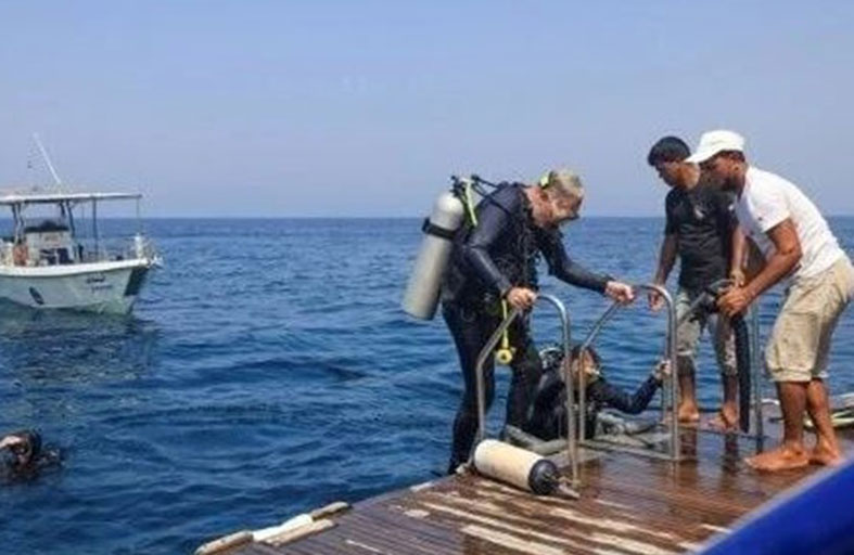 عندما ينتهي الغواصون المتطوعون من ارتداء البزّات الخاصة بمهامهم ومن تفحُّص الخزّانات التي يضعونها على ظهورهم، على متن قارب شراعي يرسو قبالة الشواطئ البكر لجزر الديمانيات غير المأهولة في سلطنة عُمان، يبدؤون بالغطس واحداً تلو الآخر في المياه الفيروزية النقيّة.