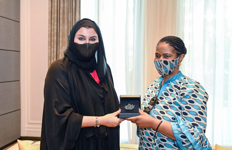 وقد كرمت سعادة الريم بنت عبدالله الفلاسي، الأمين العام للمجلس الأعلى للأمومة والطفولة، نيابة عن سمو الشيخة فاطمة بنت مبارك ، السيدة فومزيلي ملامبو.