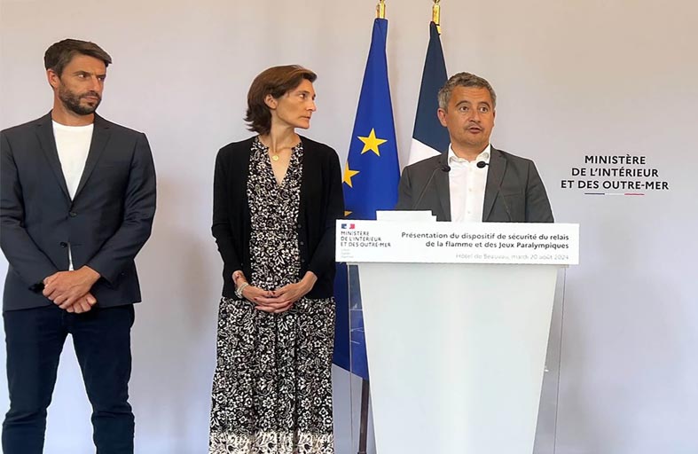 وأضاف أن الأمن سيعزز بدعم من 300 عضو من قوات التدخل الخاصة مثل الـGIGN، الـBRI، والـRAID، بالإضافة إلى أكثر من 10 آلاف عنصر من الأمن الخاص. وأكد أنه سيتم توفير حماية مشددة لمشعل الألعاب البارالمبية من خلال فريق مخصص يتكون من 18 إلى 30 من الشرطة والدرك مدعومين بنظام مضاد للطائرات المسيرة، و12 دراجا ناريا، وأفراد من فرقة التدخل السريع الـGIGN إضافة إلى وحدة قوة متنقلة تضم 150 فردا.