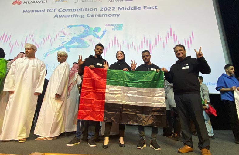 حصد فريق من جامعات الدولة المركز الثالث ضمن نسخة العام 2022 من مسابقة هواوي لتقنية المعلومات والاتصالات في منطقة الشرق الأوسط، حيث تم الإعلان عن أسماء الفائزين على مستوى المنطقة خلال الحفل الختامي الذي أقيم امس في العاصمة العمانية مسقط . وشهدت مسابقة العام الحالي منافسة كبيرة بين 15 فريقاً من المواهب التقنية المميزة والذين ترشحوا من بين 19.300 طالب مشارك من 472 جامعة و11 دولة من جميع أنحاء الشرق الأوسط وآسيا الوسطى، بحضور صاحب السمو تيمور بن أسعد آل سعيد رئيس مجلس محافظي البنك المركزي العماني ، وصاحب السمو كامل بن فهد آل سعيد مساعد الأمين العام لمكتب نائب رئيس الوزراء لشؤون مجلس الوزراء العماني، ومعالي المهندس سعيد بن حمود المعولي وزير النقل والاتصالات وتقنية المعلومات وعدد من السفراء. وفاز فريق الإمارات الذي يتألف من مريم عودة من جامعة الشارقة، وإياسو أرايا وسمون فتوي من كليات التقنية العليا بالمركز الثالث، فيما نال فريق باكستان 1 وفريق العراق 1 بجائزة المركز الثاني ، بينما فاز الفريق الأردني بالمركز الأول. وقال سعادة الدكتور علي بن عامر الشيذاني، وكيل وزارة النقل والاتصالات وتقنية المعلومات في سلطنة عمان، تم تنظيم مسابقة تقنية المعلومات والاتصالات في الشرق الأوسط 2022 في سلطنة عُمان بالتعاون مع وزارة العمل وعُمانتل وهواوي كجزء من مبادرة "مكين" لتحسين المهارات الرقمية، مؤكداً أن السلطنة تعتبر مركزاً تقنياً يسهم في تنمية مهارات الشباب الموهوبين في المنطقة.