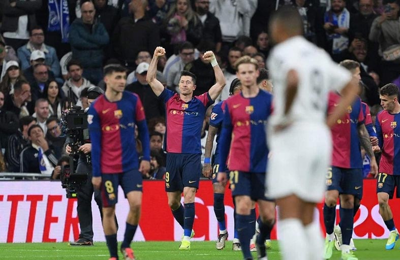 ويدين البلاوغرانا الذي تابع عروضه الكبرى بعد أن اسقط بايرن ميونيخ الألماني 4-1 ايضا في دوري أبطال أوروبا خلال منتصف الأسبوع، بفوزه الى هدافه الهولندي روبرت ليفاندوفسكي صاحب الثنائية (54 و56)، فيما أكمل لامين جمال (77) والبرازيلي رافينيا (84) مهرجان الأهداف.