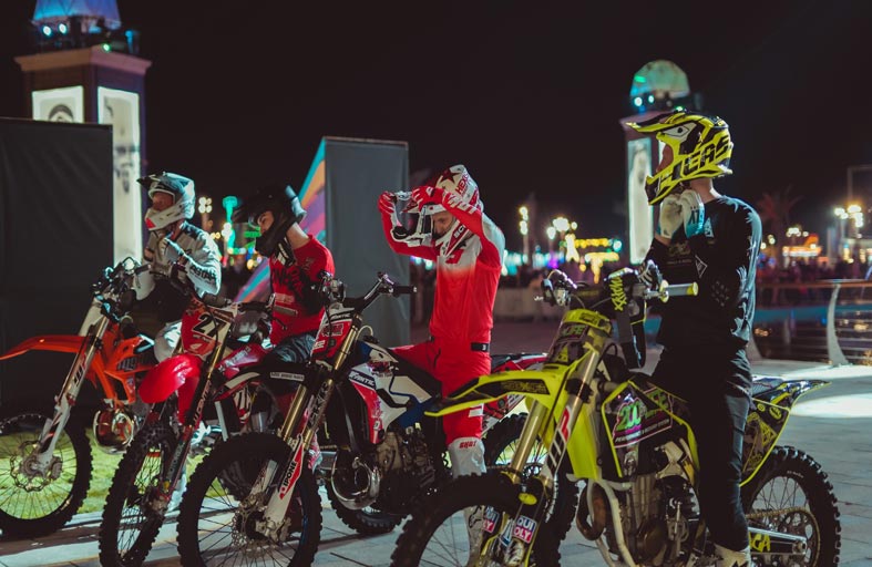 انطلقت فعاليات عرض الدراجات النارية "إكستريم ويك أندز" في مهرجان الشيخ زايد بمنطقة الوثبة وسط حضور جماهيري لافت مع بدء العروض الاستثنائية في يومها الأول والتي تستمر حتى 30 يناير الجاري. وقدم أربعة دراجين عالميين خلال فعاليات اليوم الأول من عرض الدراجات النارية استعراضات احترافية وحماسية بالقرب من نافورة الإمارات الأولى من نوعها في الدولة وسط أجواء من السعادة والبهجة على المهرجان حيث استمتع الزوار من مختلف الفئات العمرية والجنسيات مع كل قفزة يقوم بها الدراجون في الهواء. وتستمر فعاليات "إكستريم ويك أندز" خلال شهر يناير الجاري مع عرضين يومياً خلال أيام الجمعة والسبت والأحد من كل أسبوع حيث يقدم خلال تلك الفترة رياضيو دراجات الموتوكروس عروضا مذهلة يتحدون خلالها جاذبية الأرض. يذكر أن مهرجان الشيخ زايد يضم العديد من الأجنحة والنشاطات الثقافية والترفيهية المتنوعة من جناح عام الخمسين وجناح ذاكرة الوطن والواحة الزراعية ومنتجع الفرسان الرياضي ومدينة الألعاب الترفيهية وحديقتي الزهور والأضواء وأجنحة الحضارات العالمية وغيرها العديد إضافة إلى العروض الفلكلورية للدول المشاركة والكرنفال الذي يجوب ساحات المهرجان يومياً والسحوبات والمسابقات القيمة والألعاب النارية الكبرى التي تضيء سماء الوثبة كل يوم سبت عند الساعة 10 مساءً.