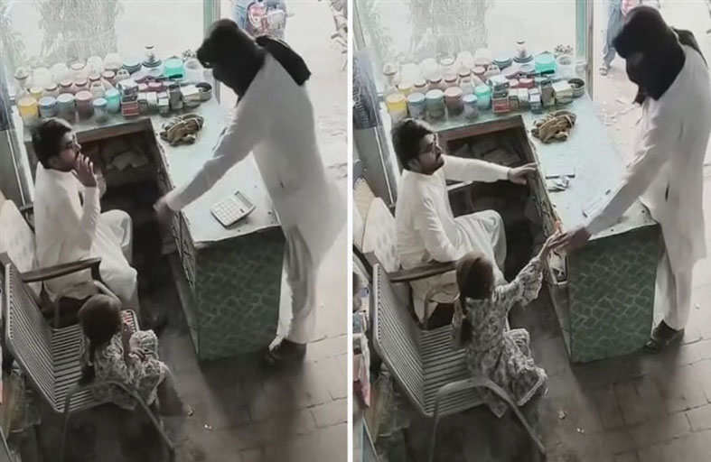 شهدت مواقع التواصل الاجتماعي خلال الساعات الماضية، انتشاراً واسعاً لمقطع فيديو مؤثر يظهر طفلة صغيرة توقف محاولة سرقة، بعدما قدّمت "قطعة حلوى" للص مسلح دخل متجر والدها في باكستان. انتشر المقطع على أنه من كاميرا مراقبة داخل متجر، حيث يظهر مالك المحل جالساً خلف الكاونتر وبجواره طفلته ذات الأربع أو الخمس سنوات، قبل أن يدخل رجل مسلّح ويهدّد صاحب المتجر ويطالبه بالمال والهاتف.