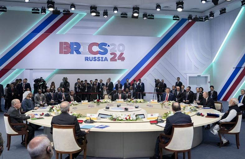 أكد قادة دول مجموعة "بريكس"، في البيان الختامي للقمة السادسة عشرة، التي عُقدت في مدينة قازان الروسية، أهمية تعزيز التعاون على أساس المصالح المشتركة واستمرار توسيع الشراكات. ورحّب البيان، بالقرار المتخذ في إطار إستراتيجية الشراكة الاقتصادية لمجموعة "بريكس" حتى عام 2025، الخاص بالتدابير اللازمة لدعم الإصلاحات الضرورية لمنظمة التجارة العالمية، بهدف زيادة استقرارها ودورها وفعاليتها، وتعزيز التنمية والشمولية.