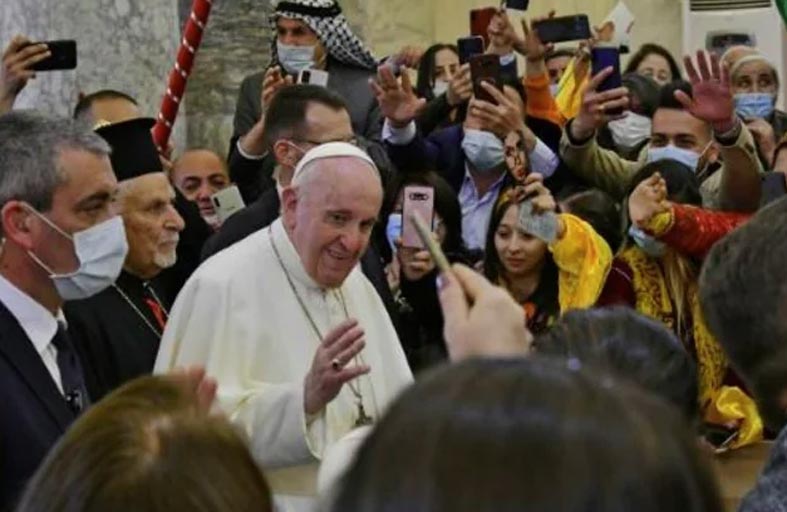 قبل سبع سنوات، هجّر منير جبرائيل من بلدته قرقوش هرباً من إرهابيين بثياب سوداء دمروا مدينته وكنيسته، لكن هذا المسيحي من شمال العراق وقف أمس في تلك الكنيسة نفسها، منتظراً رجلاً برداء أبيض، هو البابا فرنسيس. وأكد أستاذ الرياضيات البالغ من العمر 61 عاماً لفرانس برس أن “الوضع بات آمناً أكثر هنا. من الرائع أن نرى البابا. لم نتوقع قط أنه قد يأتي إلى قرقوش».
