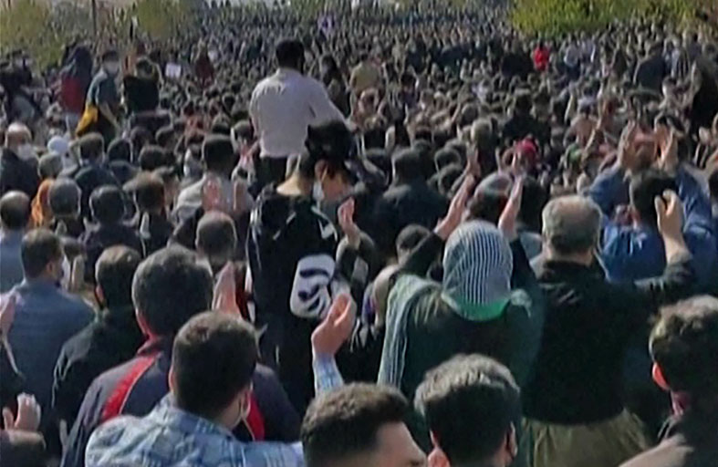 وعبر المحتجون عن غضبهم أمام رئيسي نفسه أثناء زيارته لجامعة بطهران هذا الشهر، حين هتفت الطالبات قائلات “رئيسي أغرب عن وجهنا” و”الملالي أغربوا عن وجهنا». وفي تكرار لتصريحات خامنئي، دأب رئيسي على إلقاء اللوم على الغرب في الاضطرابات، واتهم الرئيس الأمريكي جو بايدن بإشاعة “الفوضى والإرهاب والدمار”، واستشهد بوصف الخميني للولايات المتحدة بأنها “الشيطان الأكبر».