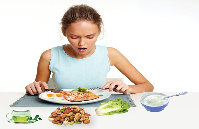تعتمد الوجبات على الخضراوات، خصوصًا الورقية، الفواكه، الحبوب الكاملة مثل الشوفان، الشعير، والأرز البني.