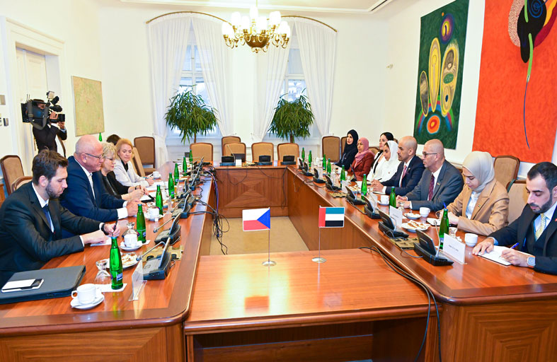 وجرى خلال اللقاء بحث سبل تعزيز علاقات التعاون بين البرلمانين، والتأكيد على أهمية هذه الزيارة في تعزيز التعاون البرلماني وتبادل الخبرات بما يصب في صالح البلدين والشعبين الصديقين، في ظل ما يشهده العالم من تطورات وتحديات كبيرة، وما يتطلبه ذلك من توحيد للمواقف والتوجهات حيال مختلف القضايا ذات الاهتمام المشترك. وتطرق اللقاء إلى تطور العلاقة الاقتصادية الإماراتية التشيكية خلال السنوات الأخيرة، حيث تعتبر دولة الإمارات ثاني أكبر شركاء الجمهورية التشيكية التجاريين غير الأوروبيين بعد الصين، وبلغ إجمالي التبادل التجاري بين البلدين في عام 2021 حوالي 4,26 مليار درهم (1,159 مليار دولار)، فيما بلغت قيمة الصادرات التشيكية إلى الإمارات 821 مليون دولار، وقيمة الواردات من الإمارات 337 مليون دولار، وتعززت العلاقة الاقتصادية بتوقيع دولة الإمارات اتفاقية تعاون اقتصادي وتجاري وفني مع جمهورية التشيك في يناير 2022، لتدشن لمرحلة جديدة من العلاقات الاقتصادية والشراكة في مجالات التجارة والاستثمار وتبادل المعرفة وأنشطة الإنتاج والصناعات المختلفة والطاقة المتجددة، وتقنيات المستقبل والابتكار والزراعة الحديثة والفضاء والاقتصاد الرقمي، والرعاية الصحية والأمن الغذائي وريادة الأعمال والسياحة العلاجية، بما يصب في دعم خطط النمو الاقتصادي المستدام في البلدين.