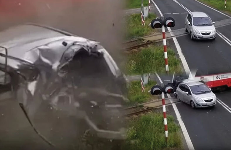 ورغم نزول الحواجز التحذيرية بشكل تلقائي لتنبيه السائقين بقدوم القطار، إلا أن السيارة لم تتوقف بل اخترقت الحاجز وتوقفت مباشرة فوق القضبان.
