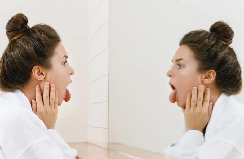 وفقًا لمقطع فيديو على تيك توك نشرته "healthwellnesslifestyle"، يمكن أن يشير لون اللسان إلى مشاكل صحية معينة، فاللسان الوردي الفاتح يُعد صحيًا، بينما اللسان الأصفر قد يشير إلى مشاكل في المعدة أو الهضم. ويرتبط اللسان الأبيض أو الرمادي غالبًا بالجفاف، في حين يمكن أن يكون اللسان الأرجواني مؤشرًا على مشاكل في الرئة أو القلب. أما اللسان الأحمر الفاتح، فقد يشير إلى وجود مشاكل في القلب أو الدورة الدموية. وأشارت صحيفة ميرور البريطانية إلى أن هيئة الخدمات الصحية الوطنية تقول إن اللسان الأبيض عادة ليس خطيرًا، ويمكن علاجه بسهولة، ولكن إذا كان مؤلمًا، يُفضل استخدام فرشاة أسنان ناعمة أو مكشطة للسان، وتجنب شرب الكحول والتدخين والأطعمة الحارة أو الحمضية. يجب استشارة الطبيب إذا كان هناك قلق بشأن اللسان، إذ قد يشير اللسان الأبيض إلى حالات صحية مثل فقر الدم أو القلاع الفموي.
