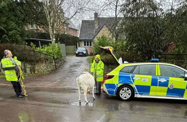أفادت صحيفة «تلغراف» أن شرطة ويلتشير، جنوب غرب إنجلترا، تمكنت من السيطرة على ماعز هارب أزعج سكان قرية أبّر سيجري بالقرب من تشيبنهم، بعد أن قام بمطاردة امرأة وأكل زينة عيد الميلاد.