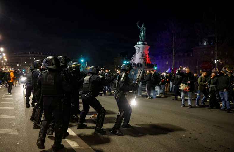 ومنذ تمرير الحكومة مشروع تعديل نظام التقاعد من دون تصويت في البرلمان، تتواصل الاحتجاجات في أنحاء فرنسا، وتنطلق تظاهرات عفوية تتخللها أحيانًا توترات مع الشرطة.