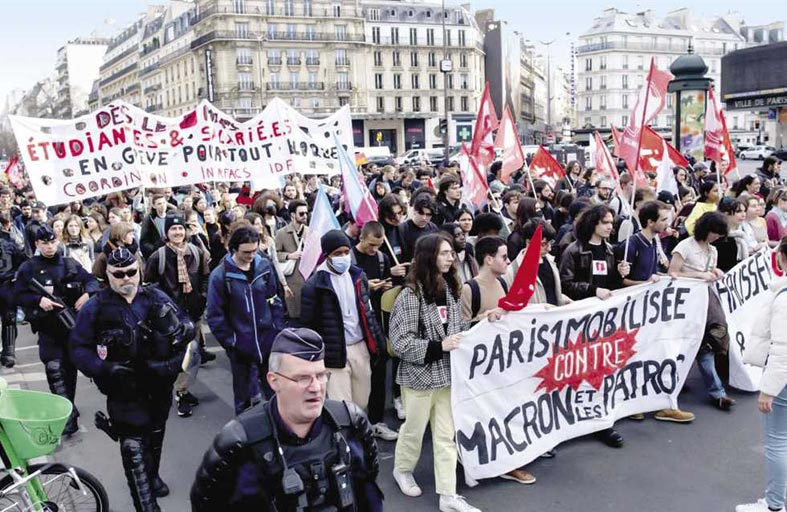 وتتواصل في فرنسا الاحتجاجات على إصلاح نظام التقاعد ولا سيّما البند الأساسي فيه المتعلّق برفع سنّ التقاعد من 62 إلى 64 عاماً. ودعت النقابات إلى يوم احتجاجات جديد ضدّ هذا الإصلاح في السادس من حزيران-يونيو.