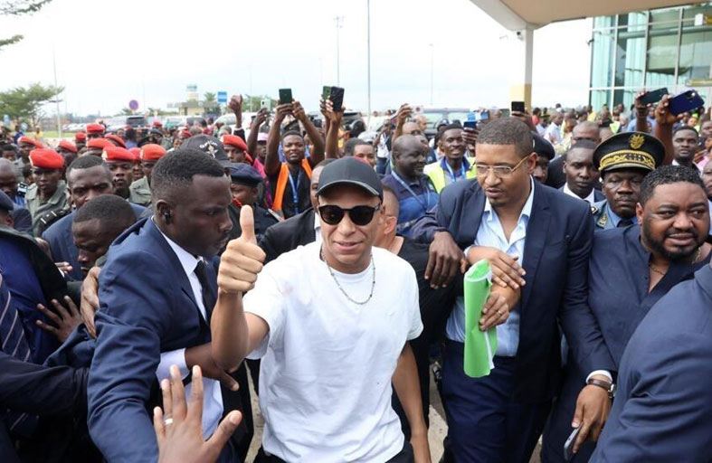 قدّمت مجموعة من حوالي مئة راقص تقليدي عرضًا على شرفه. حيّا مبابي الحشود الذين أبقوهم عناصر الشرطة على مسافة منه، قبل أن يُنقل بعيدًا في سيارة دفع رباعي ذات نوافذ داكنة.