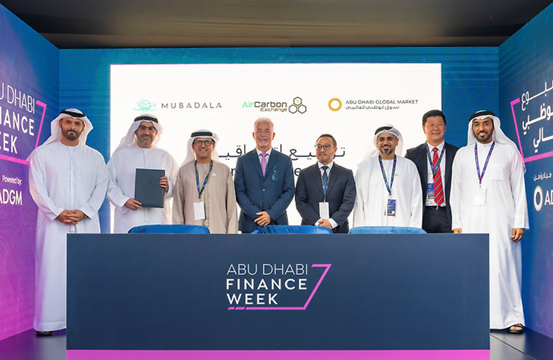 ويشكل الحدث منصة لمحادثات معمقة حول القطاع المالي المزدهر في منطقة الشرق الأوسط وشمال أفريقيا. وشهد توقيع الاتفاقية أحمد الزعابي رئيس مجلس إدارة سوق أبوظبي العالمي و مصبح الكعبي الرئيس التنفيذي لقطاع الاستثمار في الإمارات في مبادلة. ووقع الاتفاقية نيابةً عن مبادلة، بدر سليم سلطان العلماء، والمدير التنفيذي لوحدة المجمعات الاستراتيجية في قطاع الاستثمار في الإمارات، التابع لشركة مبادلة للاستثمار، وظاهر بن ظاهر، رئيس التنفيذي لسلطة التسجيل في سوق أبوظبي العالمي، و توماس ماكماهون، الرئيس التنفيذي و شريك مؤسس في AirCarbon Exchange (ACX).