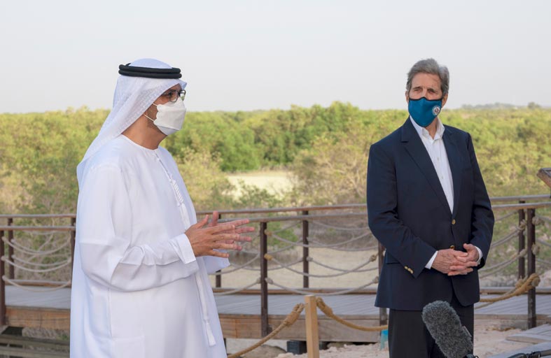 وقال معاليه : لقد أثبتت دولة الإمارات على نحوٍ مستمر ريادتها في مجال العمل المناخي، ففي وقت سابق من هذا الشهر، استضفنا في أبوظبي كلاً من جون كيري، المبعوث الرئاسي الخاص لشؤون التغير المناخي، وألوك شارما، رئيس الدورة السادسة والعشرين لمؤتمر الأطراف في اتفاقية الأمم المتحدة لتغير المناخ COP 26 ، إلى جانب ممثلين رفيعي المستوى من 10 اقتصادات رئيسية من دول منطقة الشرق الأوسط وشمال أفريقيا، وذلك في الحوار الإقليمي حول المناخ .. واختُتم هذا اللقاء ببيان مشترك من دول المنطقة، وبيان ثنائي مشترك بين دولة الإمارات والولايات المتحدة الأمريكية يلتزمان فيه بتحفيز العمل المناخي. وذكر معاليه أن دولة الإمارات تسعى دوماً أن تكون في مقدمة الداعمين والمدافعين عن العمل المناخي، ونحن على استعداد تام للعمل مع الولايات المتحدة الأمريكية وشركائنا العالميين لإنجاح الجهود المكثفة التي يبذلها العالم هذا العام في العمل من أجل المناخ.