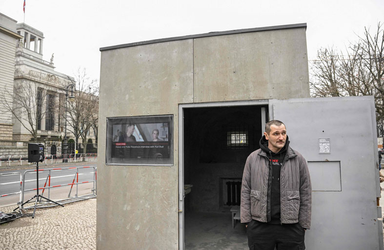مجسم لزنزانة نافالني قبالة سفارة موسكو في برلين
