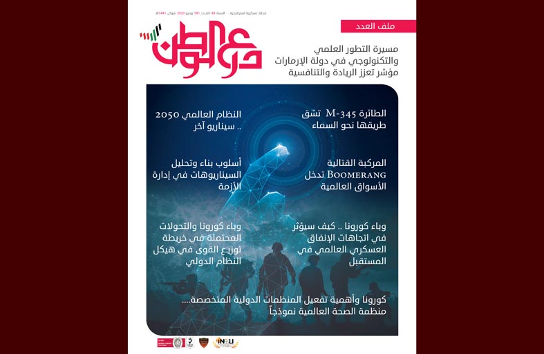 وجاءت افتتاحية العدد تحت عنوان “الإمارات والإستعداد لمرحلة مابعد كورونا “ .. فيما جاء ملف العدد بعنوان “مسيرة التطور العلمي والتكنولوجي في دولة الإمارات مؤشر تعزز الريادة والتنافسية “ فيما استعرض العدد جملة من الموضوعات المتخصصة في فيروس كورونا مثل ووباء كورونا كيف سيؤثر في اتجاهات الإنفاق العسكري العالمي في المستقبل وموضوع استخدام الذكاء الإصطناعي للتعامل مع الأوبئة “كوفيد -19” نموذجا.