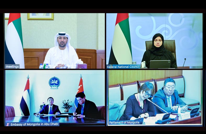عقدت مجموعة لجنة الصداقة مع برلمانات الدول الآسيوية في المجلس الوطني الاتحادي برئاسة سعادة عبيد خلفان السلامي رئيس المجموعة، وحضور سعادة عائشة محمد الملا نائبة رئيس المجموعة، اجتماعاً افتراضياً مع لجنة الصداقةِ المنغولية الإماراتية في برلمان جمهوريةِ منغوليا.