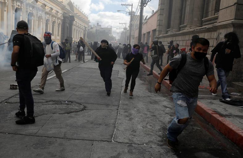 نظم آلاف أكبر احتجاج حتى الآن ضد رئيس جواتيمالا أليخاندرو جياماتي حيث أضرم البعض النار في مبنى الكونجرس بسبب الغضب من التخفيضات في ميزانية 2021 في الوقت الذي تشهد فيه البلاد صعوبات متتالية. وطالب المحتجون الذين كانوا يلوحون بعلم جواتيمالا ولافتات تطالب باستقالة الرئيس بأن يستخدم جياماتي باستخدام حق النقض (الفيتو) ضد الميزانية التي وافق عليها أعضاء البرلمان فجر الأربعاء الماضي حتى في الوقت الذي كان فيه إعصار إيوتا يغرق مناطق من جواتيمالا التي ما زالت تصارع آثار دمار عاصفة سابقة.