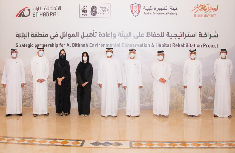 وأشاد سموه بالتزام شركة الاتحاد للقطارات بأن تكون الجار الطيب للمجتمعات المحيطة بشبكة السكك الحديدية، وأن عملياتها الإنشائية لن تؤثر على جودة حياتهم وإنما ستعززها من خلال فتح فرص جديدة ستوفرها الشبكة على مختلف الأصعدة، يضاف إليها فرص العمل ضمن قطاع السكك الحديدية الحديث والحيوي التي سيوفرها لمواطني الدولة في عددٍ من المجالات وغيرها للسياحة البيئية. وقع الاتفاقية كل من محمد المرزوقي، المدير التنفيذي لقطاع شؤون السكك الحديدية في شركة الاتحاد، وليلى مصطفى عبد اللطيف، المدير العام لجمعية الإمارات للطبيعة في أبوظبي، والمهندس علي قاسم عضو مجلس إدارة هيئة الفجيرة للبيئة، وسعيد المعمري مدير مركز الفجيرة للمغامرات، وتبع توقيع الاتفاقية زيارة تفقدية لأفلاج الري في قلعة البثنة بالفجيرة.