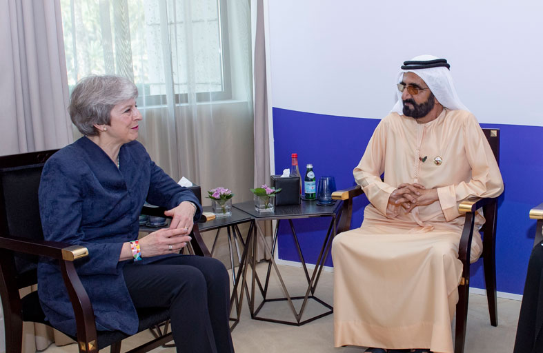 محمد بن راشد يستقبل رئيسة الوزراء البريطانية السابقة