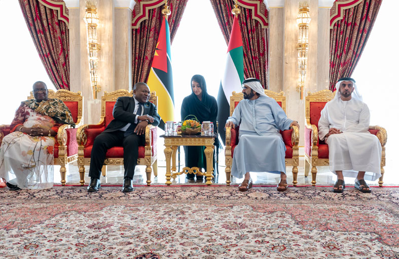 ورحّب صاحب السمو الشيخ محمد بن راشد آل مكتوم بالرئيس فليبي نيوسي، بحضور سمو الشيخ حمدان بن محمد بن راشد آل مكتوم، ولي عهد دبي، وسمو الشيخ مكتوم بن محمد بن راشد آل مكتوم، نائب حاكم دبي نائب رئيس مجلس الوزراء وزير المالية، والفريق سمو الشيخ سيف بن زايد آل نهيان، نائب رئيس مجلس الوزراء وزير الداخلية، مؤكداً سموه حرص دولة الإمارات على تعزيز علاقاتها التجارية والاقتصادية مع موزمبيق ودول أفريقيا على وجه العموم، في ضوء روابط الصداقة والتعاون المزدهرة التي تجمع البلدين، والحرص على إيجاد مسارات جديدة لتوسيع نطاق الشراكات القائمة بين دولة الإمارات والدول الأفريقية، وبما يدعم جهود التنمية فيها ويسهم في تحقيق الاستقرار والرخاء لشعوبها.