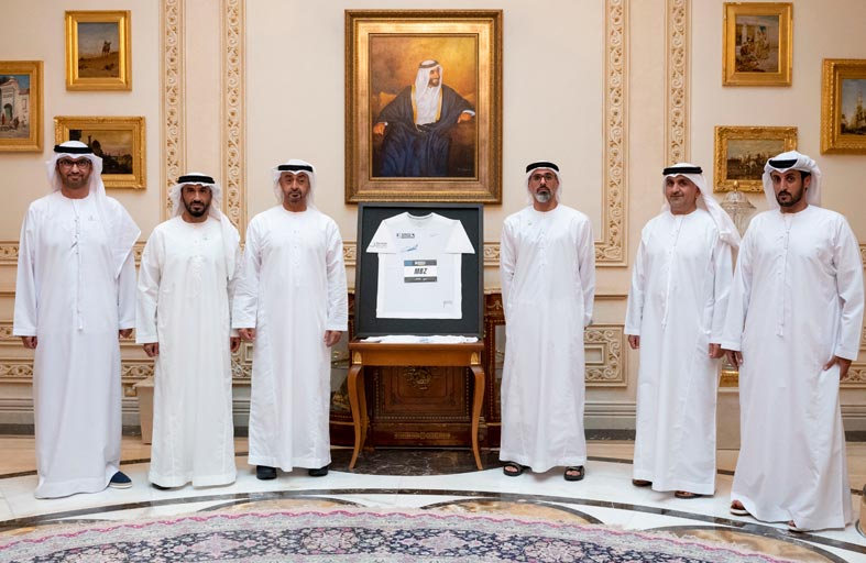 محمد بن زايد يتسلم من نهيان بن زايد .. القميص الرسمي للنسخة الثالثة لماراثون أدنوك أبوظبي