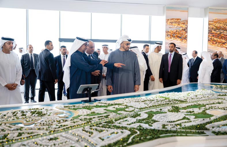 شهد صاحب السمو الشيخ محمد بن زايد آل نهيان رئيس الدولة "حفظه الله" وفخامة عبد الفتاح السيسي رئيس جمهورية مصر العربية الشقيقة أمس ــ في محافظة مطروح ــ إعلان مخطط مشروع تطوير مدينة رأس الحكمة وتنميتها على الساحل الشمالي الغربي في مصر باستثمارات مباشرة قدرها 35 مليار دولار.