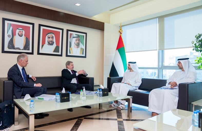 التقى معالي محمد بن هادي الحسيني وزير دولة للشؤون المالية، يوم أمس مع معالي يوهانس هان المفوض الأوروبي للإدارة والميزانية والوفد المرافق له، بحضور سعادة يونس حاجي الخوري وكيل وزارة المالية، وذلك في مقر وزارة المالية في أبوظبي.