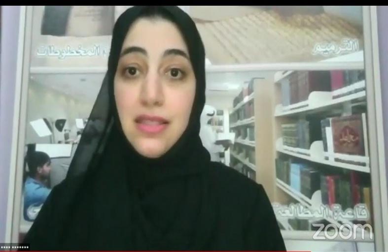 (تاريخ مهن المكتبات) عبر منصتها الافتراضية على تطبيق زوم, وقد قدمت المحاضرة الأستاذة شيخة المطيري، رئيسة قسم الثقافة الوطنية بمركز جمعة الماجد للثقافة والتراث، وأدارت الفعالية الإعلامية سارة المرزوقي، رئيسة اللجنة العلمية في جمعية الإمارات للمكتبات والمعلومات. بدأت المحاضرة بحديث عن أهمية التأريخ في مجال المكتبات وذكر مجموعة من أوائل الأبحاث والرسائل الجامعية في هذا المجال, ثم تحدثت المطيري عن أهمية التأريخ لمن عمل في المكتبة على امتداد التاريخ والمهن التي كانت مرتبطة بالمكتبة وكيفية ورود المعلومات التي تتضمن تاريخ المهن في كتب التاريخ أو كتب دراسات المكتبات.
