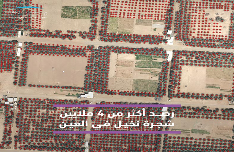 نشر مركز محمد بن راشد للفضاء صورة توضح رصد أكثر من 4 ملايين شجرة نخيل في منطقة العين باستخدام برنامج يعتمد على الذكاء الاصطناعي طوره مهندسو المركز حيث بلغت دقة النتائج 96 بالمائة.