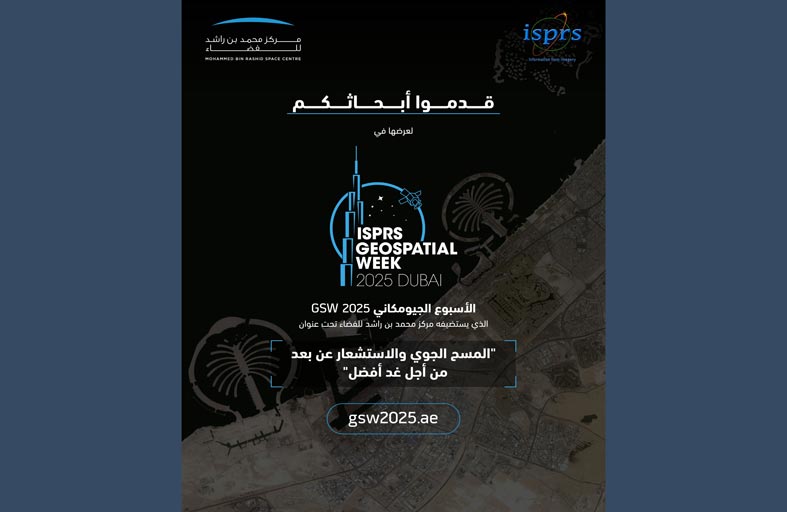 أعلن مركز محمد بن راشد للفضاء أمس، عن استضافته الأسبوع الجيومكاني 2025، بالتعاون مع الجمعية العالمية للمسح الجوي والاستشعار عن بُعد، في دبي، تحت عنوان "المسح الجوي والاستشعار عن بُعد من أجل غد أفضل"، في الفترة من 6 إلى 11 أبريل 2025.