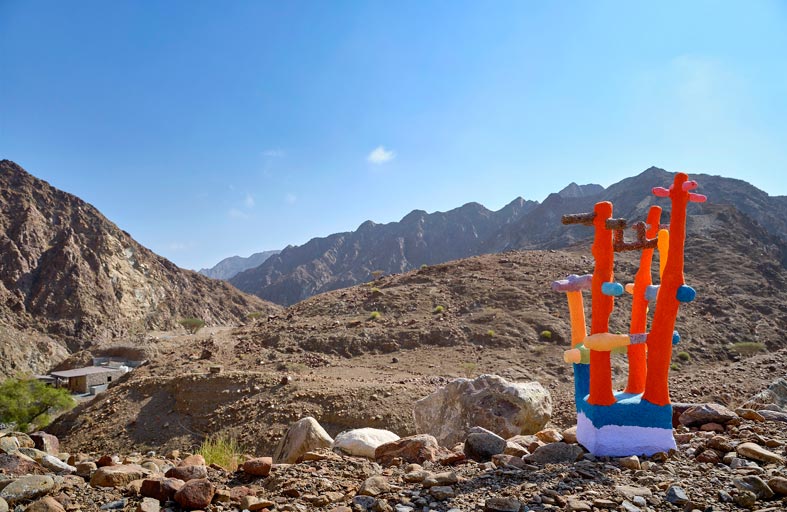 وسيحتضن المعرض، المُقام تحت إشراف القيمة الفنية مايا أليسون، المدير التنفيذي لرواق الفن ورئيس القيمين الفنيين في جامعة نيويورك أبوظبي، عملاً تركيبياً مكوناً من عدة منحوتات بحجم الإنسان مصنوعة بأسلوب نحتي مجرّد ومتناغم مستمد من الأشكال الطبيعية والعضوية، تأتي مستوحاة من العلاقة الوطيدة التي تربط الفنان ببيئته المحلية في مسقط رأسه، خورفكان – تلك المدينة التي تحيطها جبال الحجر شامخة على الساحل الشرقي من إمارة الشارقة في دولة الإمارات.