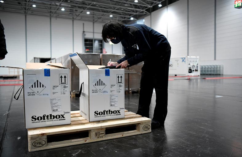 ويستعد أكبر مركز أوروبي لنقل الأدوية الذي تولى نقل 120 ألف طن من الأدوية العام الماضي، لنقل الملايين من جرعات اللقاح.