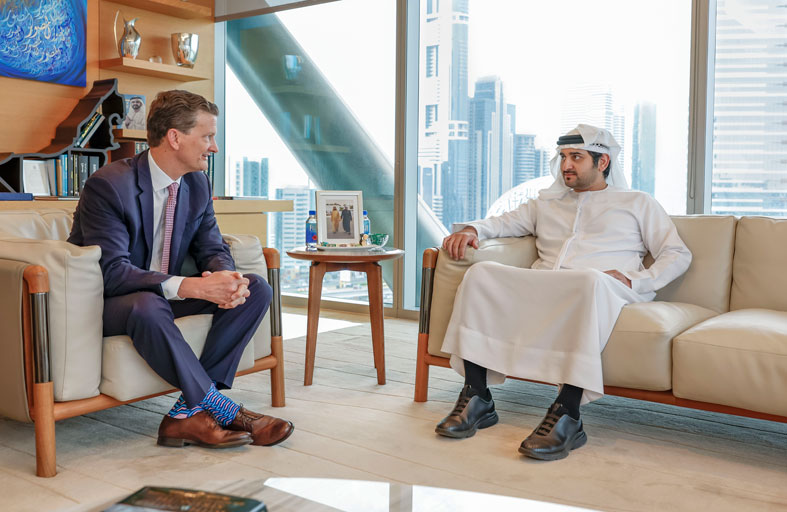 وتم خلال اللقاء استعراض أنشطة الخدمات المالية التي تتخصص فيها الشركة وتقدمها لعملائها في دولة الإمارات وكذلك المنطقة، حيث أكد سموه حرص الدولة على تطوير روابطها مع مجتمع المال والأعمال العالمي بإمداد مختلف مكوناته بكل المقومات المؤهلة للتميز، سعياً لتحقيق المزيد من النجاحات المشتركة، واستناداً إلى مجموعة من المعطيات التي تضمن مزيداً من الازدهار للشراكات القائمة والإسهام في توسيع نطاقها وإيجاد المزيد منها.