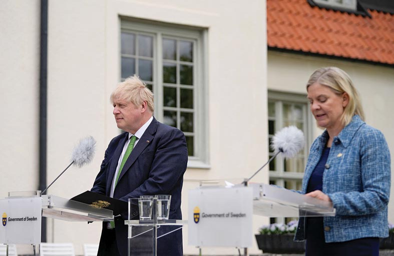 الى ذلك أعلن رئيس الوزراء البريطاني بوريس جونسون ونظيرته السويدية ماغدالينا أندرسون الأربعاء إبرام اتفاقية دفاع وحماية متبادلة في حالة وقوع عدوان، قبل قرار السويد بشأن الانضمام لعضوية حلف شمال الأطلسي (الناتو).