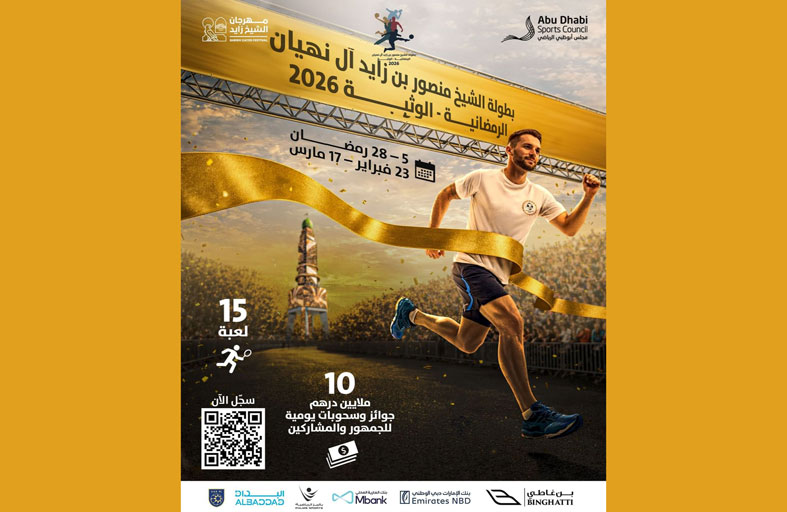 وتتجه الأنظار إلى بطولة الشيخ منصور بن زايد آل نهيان الرمضانية "الوثبة 2026"، التي تعد الأكبر من نوعها من حيث عدد الرياضات وأعداد المشاركين وقيمة الجوائز، وتقام برعاية سمو الشيخ منصور بن زايد آل نهيان نائب رئيس الدولة نائب رئيس مجلس الوزراء رئيس ديوان الرئاسة، وتضم 15 لعبة رياضية وتراثية، بإجمالي جوائز يبلغ 10 ملايين درهم للمشاركين والجمهور، إضافة إلى سحوبات يومية، وذلك خلال الفترة من 5 إلى 28 رمضان.